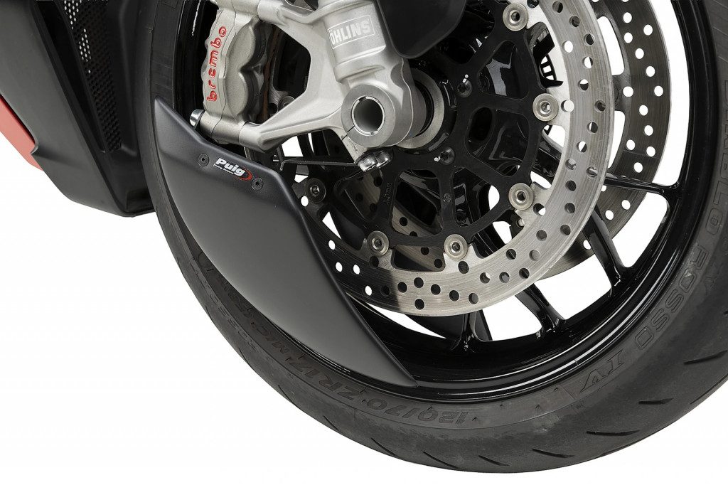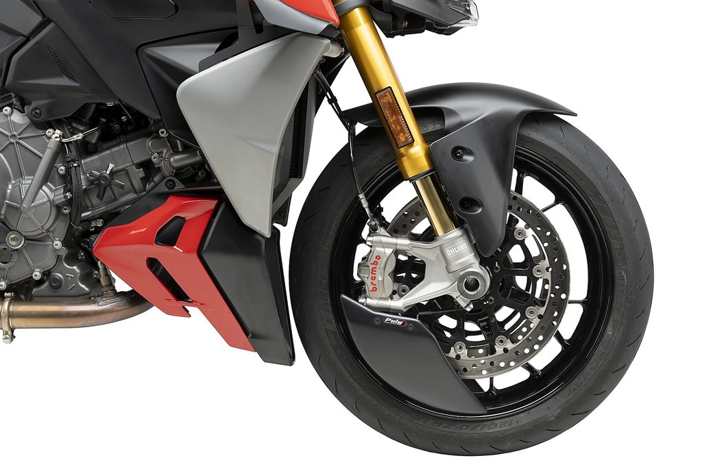 Jeho hlavní funkcí je snížit turbulence vznikající kolem předního kola, což přináší vyšší stabilitu a přesnost, zejména při vysokých rychlostech nebo v náročných jízdních podmínkách. Díky tomuto efektu nabízí motocykl předvídatelnější ovladatelnost a vyšší komfort pro jezdce.