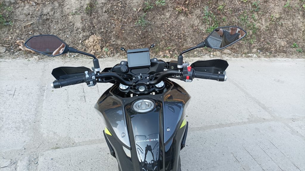 Standardní výbavou je centrální stojan, kryt motoru, kryty rukojetí.