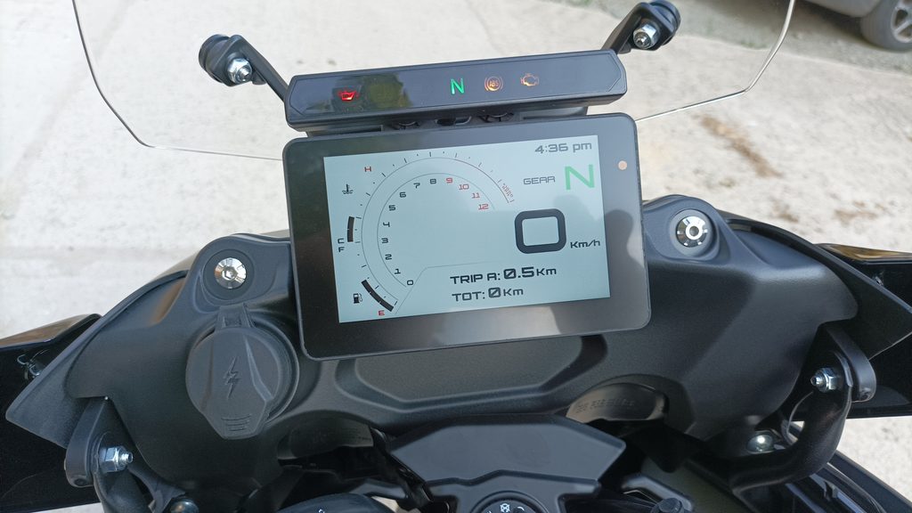 Pro dokonalé informování řidiče je TRK 702X vybaven zcela novým - 5" TFT barevný displej s vysokým rozlišením, který má připojení bluetooth pro propojení s chytrým telefonem a zobrazení příchozích hovorů a dalších funkcí. Ovládací prvky na řídítkách umožňují také přijmout nebo ukončit hovor. Jako volitelná výbava je možné TRK 702 X vybavit inovativní palubní kamerou integrovatelnou do předního "zobáku" motocyklu, která umožňuje nahrávat videa a pořizovat fotografie v reálném čase stažením aplikace do mobilního telefonu s možmostí připojení přes wifi motocyklu.