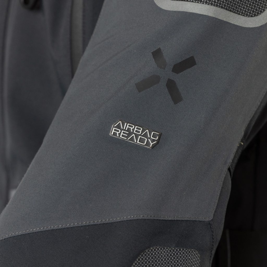 Bezpečnost zajišťují certifikované chrániče ramen, loktů a zad (a volitelné chrániče hrudníku), jakož i konstrukce Airbag Ready - kterou umožńuje použití našich rovnoměrně pevných a pružných panelů z látky X-Stretch, která poskytuje vyšší bezpečnost, lepší pohodlí a volnost pohybu.