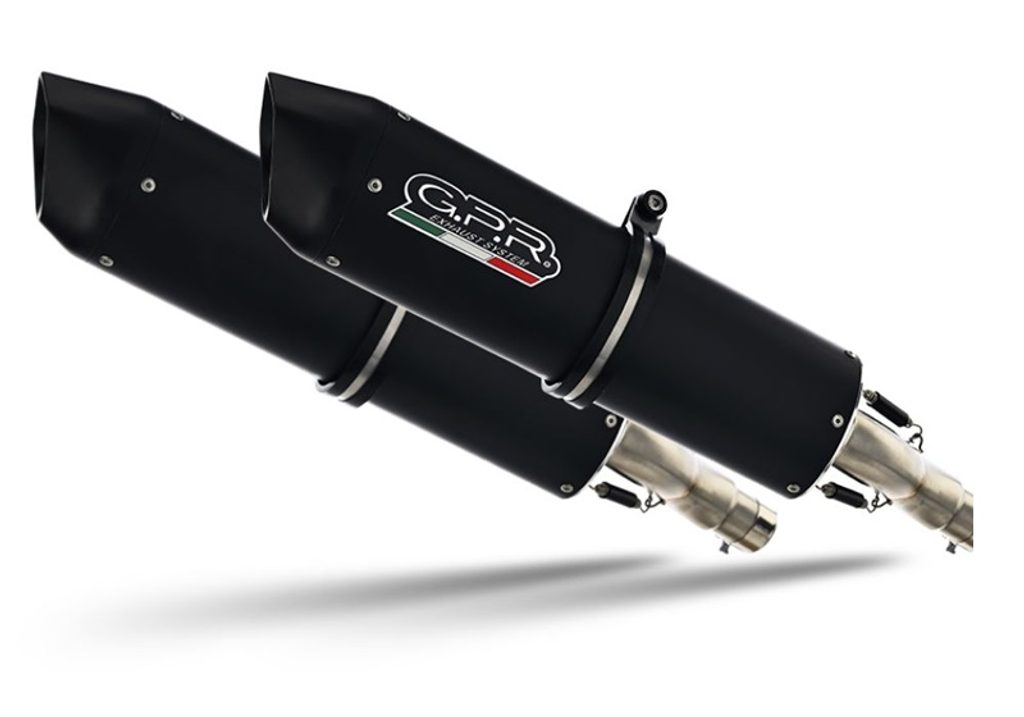 Dvojitá koncovka výfuku Slip-on GPR FURORE NERO K.148.CAT.FUNE Matná černá zahrnuje odnímatelné db killery, spojovací svody a katalyzátory