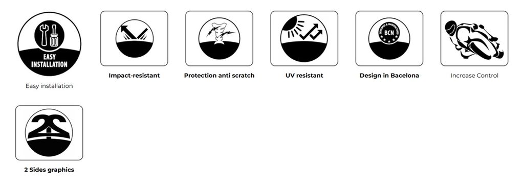 Jedná se o velmi tenký a nenápadný produkt, u kterého jsou viditelné pouze charakteristické „výstupky“, navržené pro lepší přilnavost ve střední části nádrže, což je zvláště užitečné při prudkém brzdění nebo jízdě v agresivnější pozici. Zbytek materiálu je prakticky neviditelný, což zajišťuje dokonalé vizuální splynutí s motocyklem.