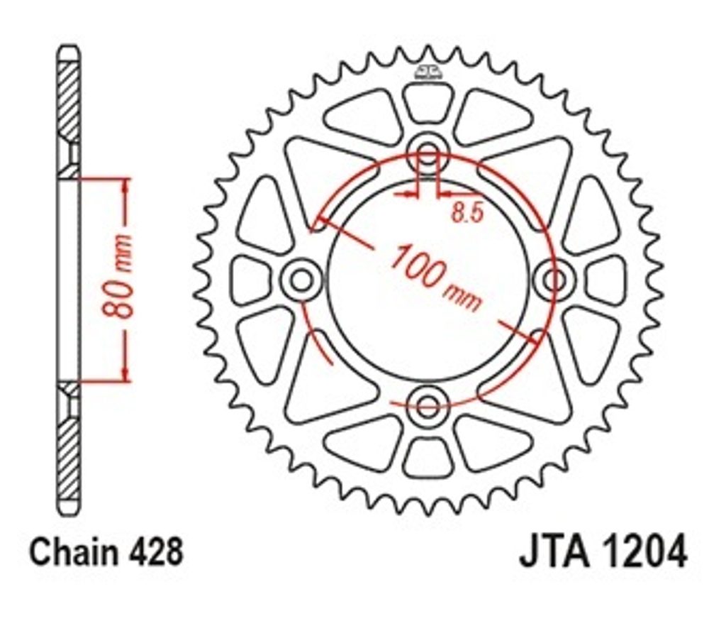 Hliníková řetězová rozeta JT JTA 1204-49BLK 49)T, nt((428 černá