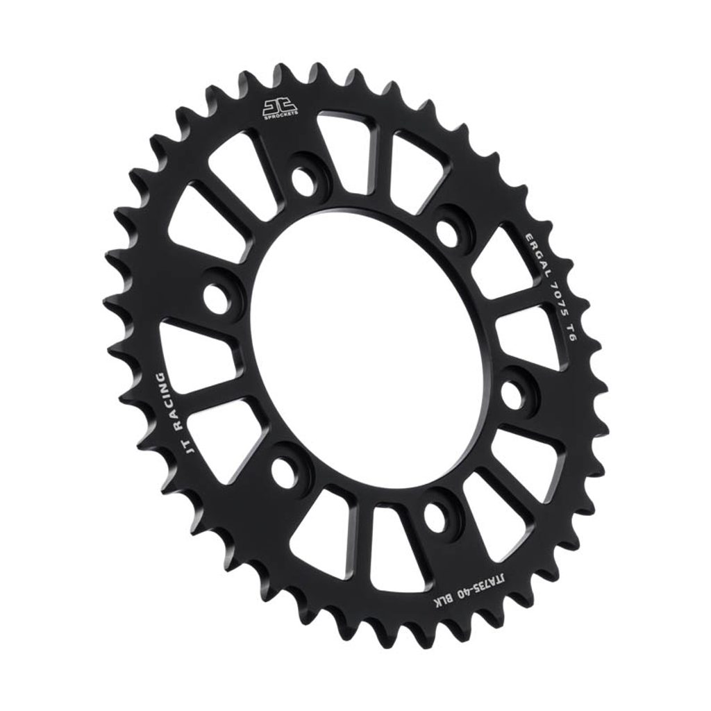 JT používá výhradně ty nejkvalitnější materiály. Pro závodní lehké rozety je to hliníková slitina letecké kvality 7075-T6, pro přední pastorky extrémně pevná slitina SCM420 (chrom-molybdenová ocel) a pro zadní ocelové rozety jako jediný výrobce používá ultra odolnou uhlíkovou ocel C49.