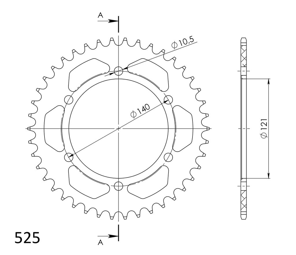 Hliníková řetězová rozeta SUPERSPROX RAL-6611:42-BLK černý 42 zubů, 525