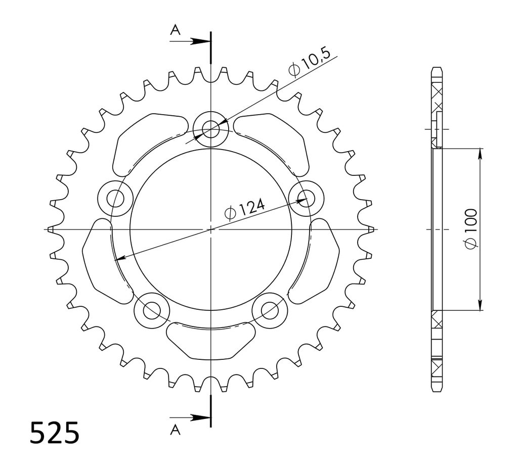 Hliníková řetězová rozeta SUPERSPROX RAL-744:38-BLK černý 38 zubů, 525