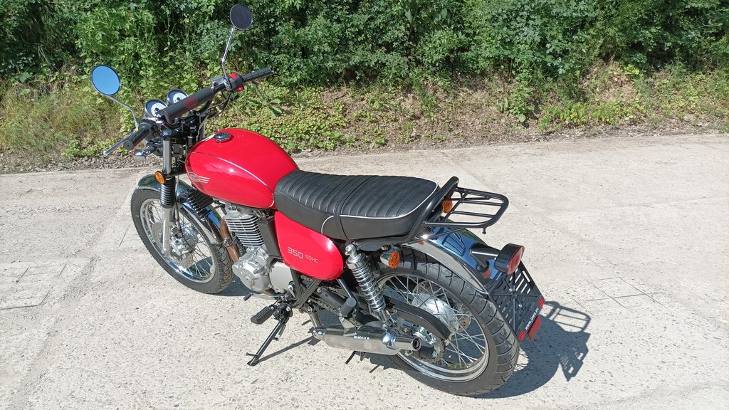JAWA 350 OHC Sport – Po úspěšném uvedení modelu JAWA 350 OHC Scrambler na trh bylo jednoznačné pokračovat v tomto stylu motocyklu i nadále. Přechod na novou homologační normu EURO V si vyžádal drobné technické změny, ale z hlediska celkového pojetí motocyklu se jednalo skutečně o minimu změn. Ono minimum bez pochyb přispívá ke zlepšení jízdních vlastností tohoto oblíbeného modelu. Jedná se především o úpravu zadní vidlice, zadní kotoučové brzdy, nově použitého olejového chladiče a led předního světla. Shodně se svým předchůdcem má i design modelu JAWA 350 OHC Sport navázat na bohaté úspěchy motocyklů značky JAWA v motocyklových soutěžích. Dominantou a tradičním prvkem je klasický kapkovitý tvar nádrže. Po technické stránce je tento model identický s modelem JAWA 350 OHC.