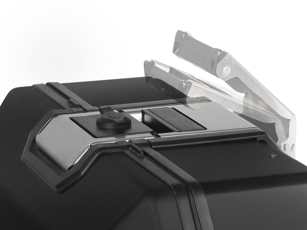 Unikátní integrovaný mechanismus zámku a madla umožňuje jednoduché ovládání jednou rukou a snadnou demontáž z motocyklu.