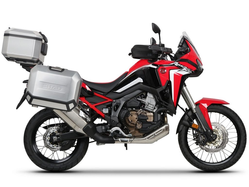Kompletní sada hliníkových kufrů SHAD Terra obsahuje vrchní kufr TR37 s kapacitou 37L včetně plotny, levý hliníkový kufr TR47 s kapacitou 47L a pravý hliníkový kufr TR36 s kapacitou 36L kvůli umístění výfuku. Pravý kufr tak nebude vyčnívat. Sada obsahuje vše, co potřebujete k montáži obou kufrů.