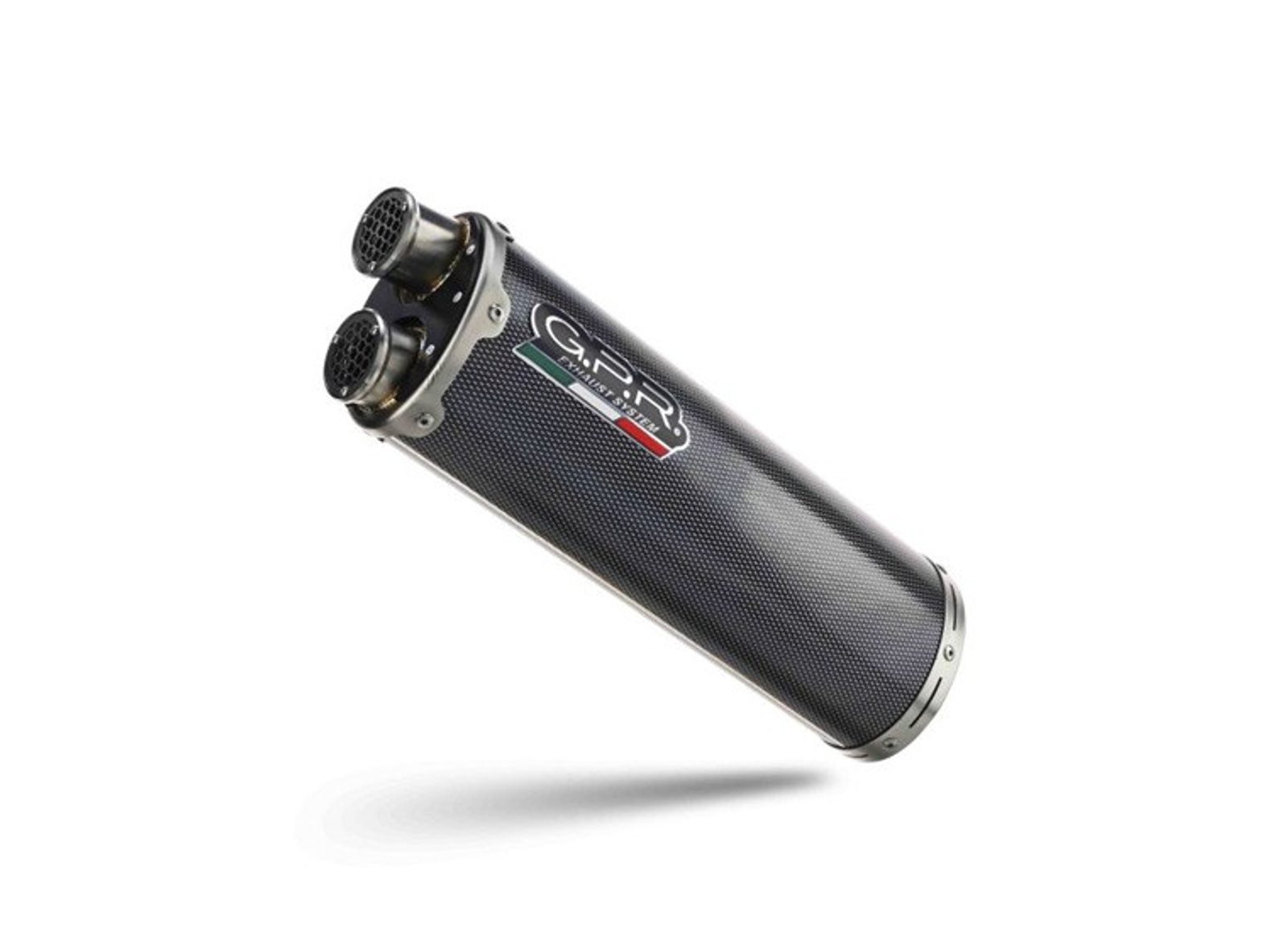 Koncovka výfuku Slip-on GPR DUAL POPPY E5.CF.10.1.DUAL.PO Karbonový vzhled zahrnuje spojovací svod a odnímatelný dB killer
