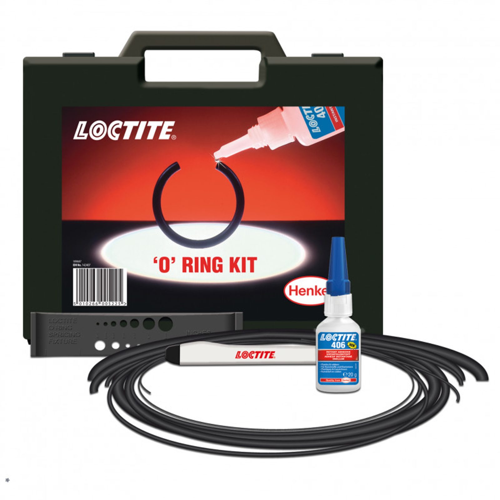 Sada O-kroužků LOCTITE je nouzová opravná sada k výrobě náhradních O-kroužků na místě. Snadno se s ní pracuje a je připravená k použití během pár sekund. Přiložený LOCTITE 406 vytváří spoj stejně pevný jako samotná pryž. Sada obsahuje pět různých velikostí šňůry z nitrilové pryže, bezpečnostní nůž. Produkt LOCTITE 406 v 20 g není součástí balení.