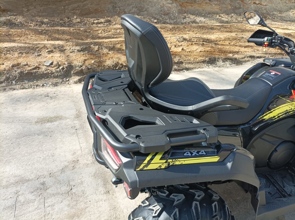 Za řidítkama si budeš připadat jako v kokpitu. Na digitálním displeji krásně uvidíš veškerý info o mý kondici i stylu tvý jízdy. Pomocí blů-tůčka navíc vcukuletu spáruješ telefon, a tak budeš mít na očích echo o příchozích hovorech. Vo můj spodek pečuje spešl ochranná deska. Vo ten tvůj se postarají extrémně pohodlný sedačky. Na Vlkovi prostě tvoje zádel vlka nechytne! A když už jsme u těch intimností, tak moje koule utáhne až 800 kilo. Takže do vozejku můžeš naházet pořádnej náklad nebo převážet celou smečku pomocníků. Zasek' jsem dráp do tvý zvědavosti? Přijeď testnout, jak řve motor čtyřkolkovýho alfa samce! Třeba do mýho doupěte.