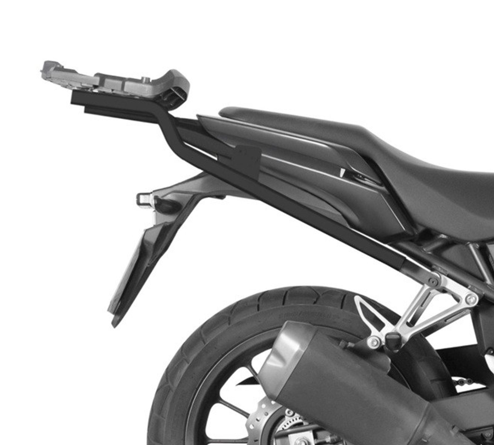 K upevnění vrchního kufru SHAD na motorku stačí namontovat tuto montážní sadu, plotna je vždy součástí kufru (kromě kufrů TR48/TR37).