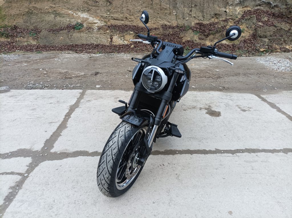 Vyladěný výfukový systém vydává hluboký, rezonující zvuk, který umocňuje zážitek z jízdy a odráží výkon motocyklu.