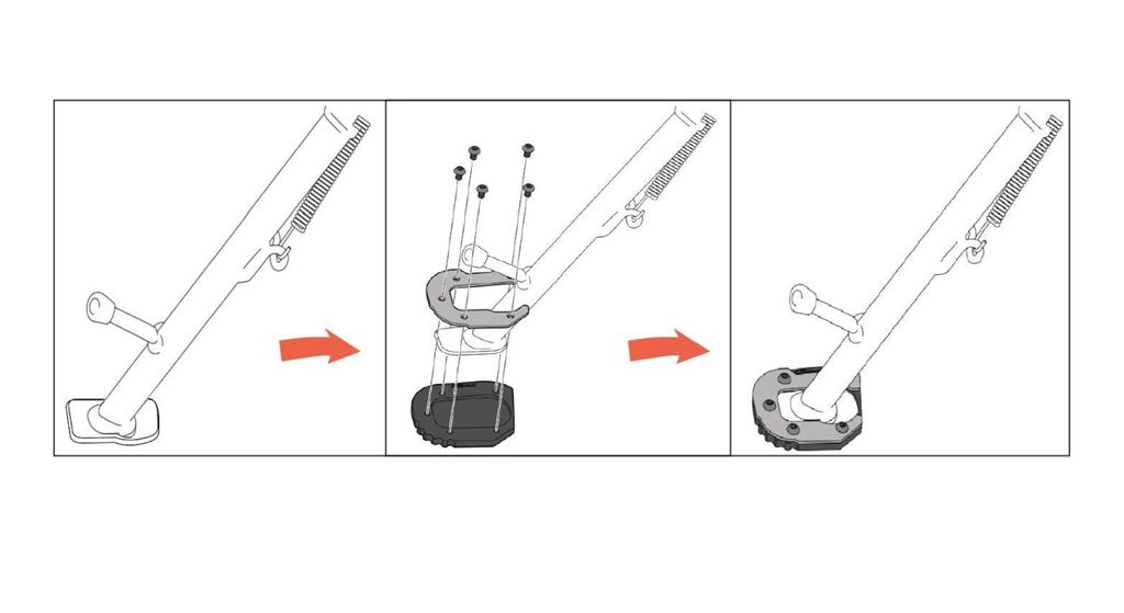 Navržena tak, aby zabránila možnému pádu motocyklu během stání. Tento díl, s 100 % širší základnou než originál, umožňuje bezpečně parkovat na měkkém nebo nerovném povrchu. Jedná se o kombinovaný díl, kde jedna část je z nerezové oceli a druhá je soustružená z hliníkového bloku s anodizovanou úpravou. Tyto materiály poskytují vysokou odolnost při zachování nízké hmotnosti (110–160 g v závislosti na modelu).