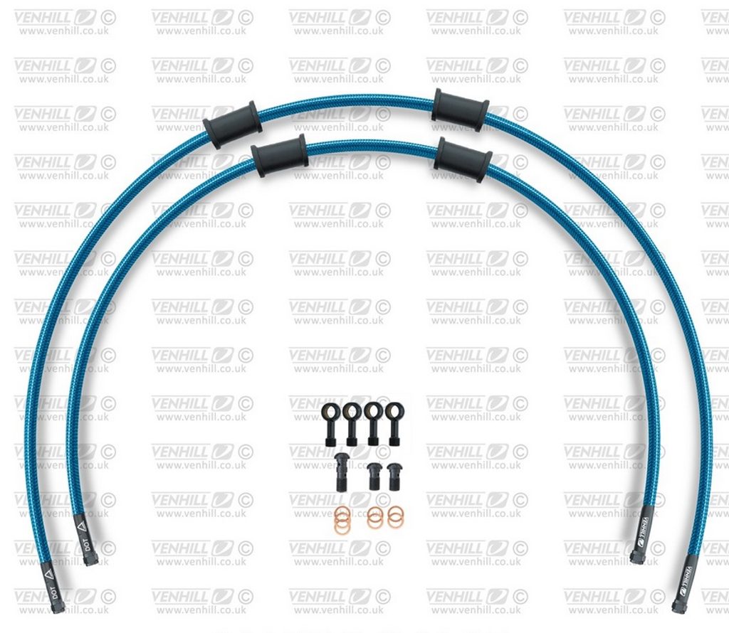 RACE Hadice přední brzdy sada Venhill POWERHOSEPLUS SUZ-11008FB-TB (2 hadice v sadě) průhledně modré hadice, černé koncovky