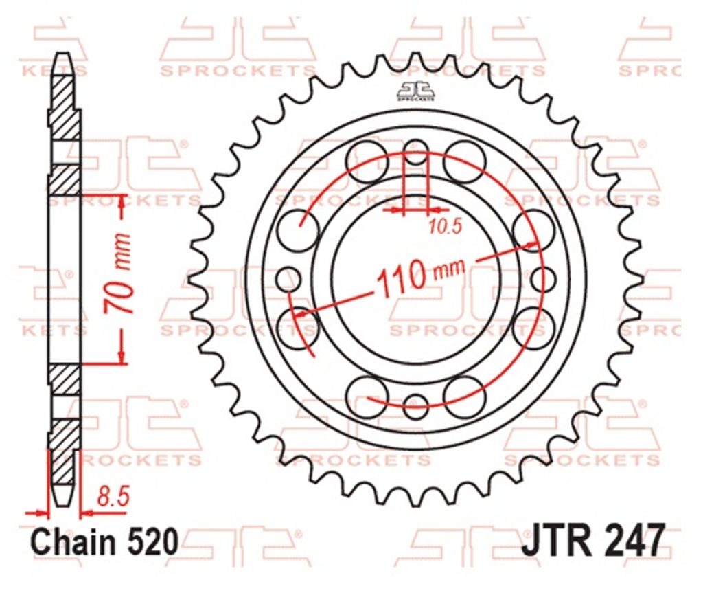 Ocelové zadní rozety JT Steel jsou vyráběny výhradně z nejkvalitnější uhlíkové oceli C49. Sortiment JT Steel nyní zahrnuje více než 2 500 dílů pro všechny motocykly a čtyřkolky (ATV).