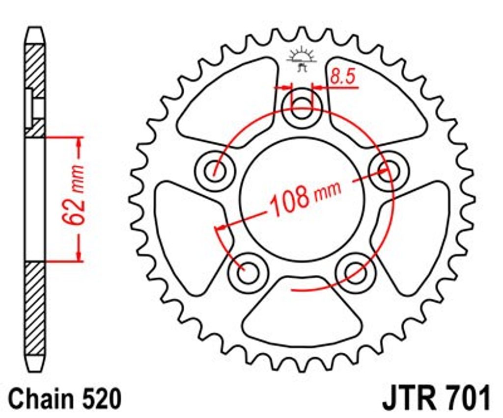 JT rozety jsou vyráběny z prvotřídní vysokopevnostní uhlíkové oceli C49. Sortiment ocelových rozet JT aktuálně čítá více než 2 500 dílů pro motocykly a čtyřkolky všech značek.