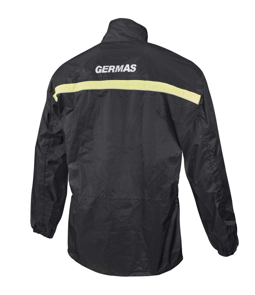 • Bunda: Elastické manžety na rukávech, stahovací šňůrka k utěsnění bundy v pase. Barevný pruh a reflexní potisk na zádech pro lepší viditelnost.