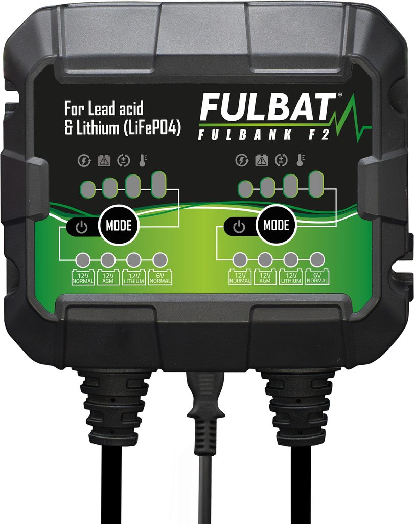 Zcela nový FULBANK F2 je kompaktní a výkonná automatická dvoukanálová nabíječka a udržovačka, navržená pro olověné i lithiové powersport baterie. Umožňuje nabíjet 6V i 12V baterie a současně pracovat s různými technologiemi a napětími na obou kanálech, což poskytuje maximální flexibilitu pro všechny vaše potřeby nabíjení.