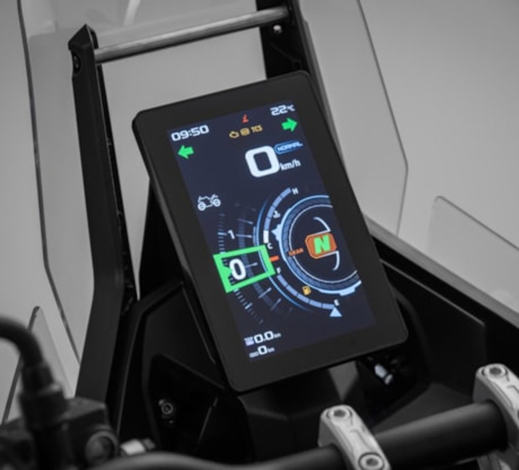 Na barevnej TFT displej s vysokým jasem a kontrastem krásně uvidíš i za toho nejvostřejšího slunka. A že je postavenej na vejšku? To není náhoda – když vyskočíš do stupaček, máš pořád perfektní přehled. Displej můžeš ovládat přes chytrý udělátka na řídítkách a přes blůtůčko si ho spáruješ s mobilem.