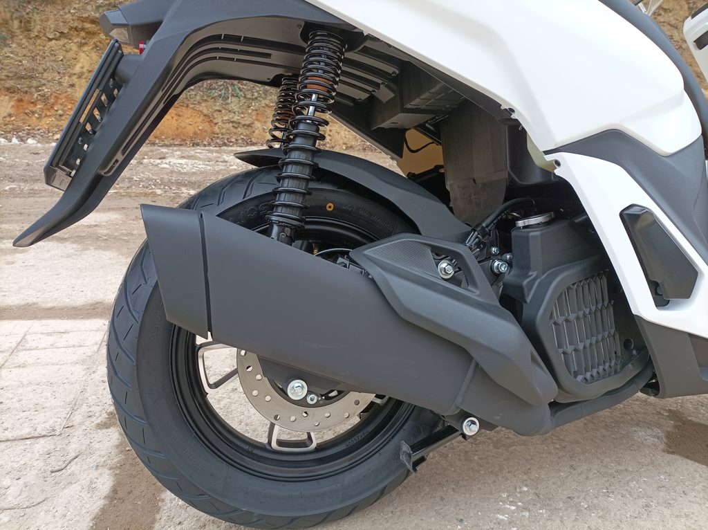 Nevěř řečem o tom, že vysoký kola jsou nudný. Pod ladnýma křivkama tepe spolehlivej, kapalinou chlazenej, čtyřtaktní jednoválec vo objemu 125 ccm. Město mu sedí jak dobře padnoucí oblek. S krouťákem 11 Nm při 6 500 otáčkách a výkonem skoro 12 koní zmákneš křižovatky i městský obchvaty. Trochu pootočíš zápěstím a akcelerace s hladkou automatickou CVT převodovkou se o všechno postará.