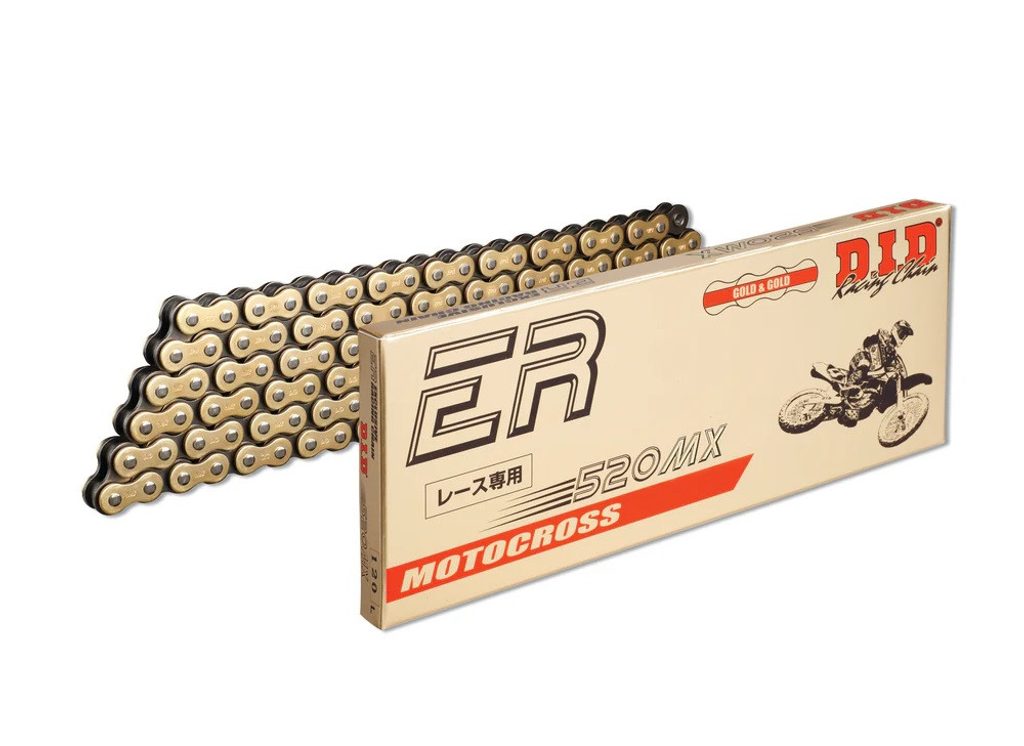 D.I.D Motokrosový závodní řetěz, 120 článků, zlatá/černá barva. Více informací