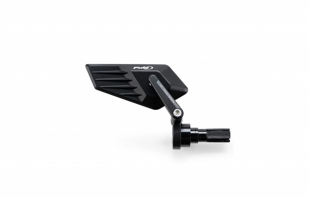 Neschválené zpětné zrcátko je navrženo k montáži na konec řídítek a nabízí funkční i estetické řešení, které se dokonale integruje s liniemi motocyklu. Ve srovnání s aktuálními modely přináší novou úroveň nastavení, která výrazně zlepšuje přizpůsobení individuálním preferencím jezdce. Tento systém umožňuje naklopení ramene zrcátka pro přesnější nastavení úhlu pohledu, přičemž zachovává možnost rotace vzhledem k řídítkům pro správnou orientaci. Konečné doladění je dosaženo prostřednictvím vysoce přesného kuličkového kloubu, který umožňuje jemné a bezpečné nastavení, zajišťuje stabilitu při jízdě a zabraňuje nežádoucím pohybům způsobeným vibracemi.