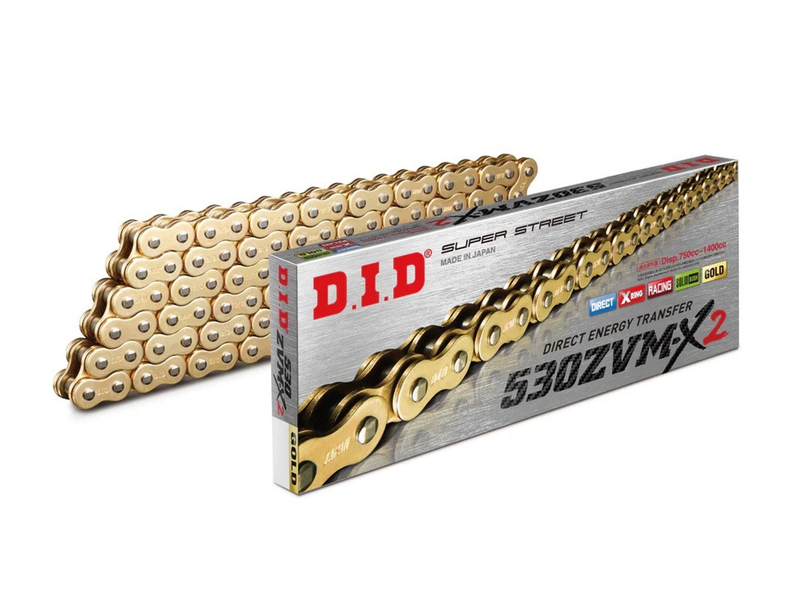 Řetěz D.I.D ZVM-X Series využívá patentované těsnění X-Ring®, které zajišťuje vyšší pevnost než řada VX a je určen pro silné motocykly s vysokým krouticím momentem a výkonem. Díky kroucenému tvaru X-Ring® těsnění lépe těsní a čtyři styčné body snižují ztráty výkonu.